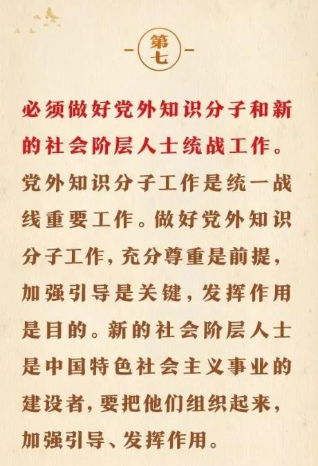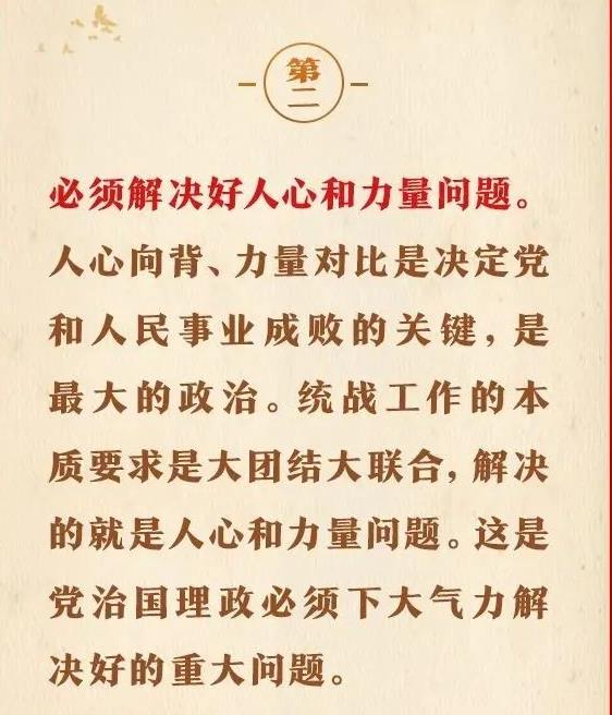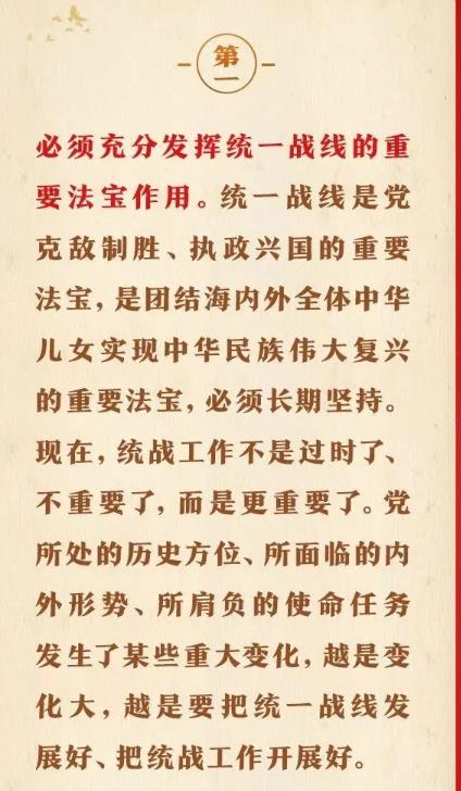 1月16日出版的第2期《求是》雜志刊發(fā)習(xí)近平總書記重要文章《完整、準(zhǔn)確、全面貫徹落實關(guān)于做好新時代黨的統(tǒng)一戰(zhàn)線工作的重要思想》。在這篇重要文章中,習(xí)近平總書記充分肯定我們黨百年統(tǒng)戰(zhàn)的歷史性貢獻(xiàn)和新時代統(tǒng)戰(zhàn)工作取得的歷史性成就,用“十二個必須”對關(guān)于做好新時代黨的統(tǒng)一戰(zhàn)線工作的重要思想作出概括,強調(diào)關(guān)于做好新時代黨的統(tǒng)一戰(zhàn)線工作的重要思想,是黨的統(tǒng)一戰(zhàn)線百年發(fā)展史的智慧結(jié)晶,是新時代統(tǒng)戰(zhàn)工作的根本指針,全黨必須完整、準(zhǔn)確、全面貫徹落實。